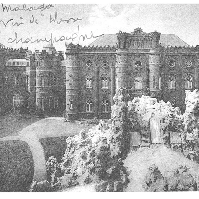 Le site de Jolimont porte cette mémoire. Avant d’être un hôpital, c’était le domaine directorial des Charbonnages de Haine-Saint-Pierre et La Hestre, appelé alors château Bouly. Construit pour le directeur-gérant Victor De Quanter dans les années 1850, le domaine rassemblait château, écuries, orangeries, serres et volières dans un parc de huit hectares. L’architecture s’y faisait manifeste : un langage mêlant styles Tudor, néogothique et orientalisant, à la croisée des influences, symbole d’un pouvoir patronal en quête de légitimation face à l’État, à l’Église et aux ouvriers. Après son abandon, le domaine est mis à disposition de l’abbé Félicien Bataille, qui y installe une communauté religieuse dédiée au soin. Ainsi, le château change de camp : d’un outil de pouvoir, il devient instrument de soin, sans rompre tout à fait avec ses origines.
