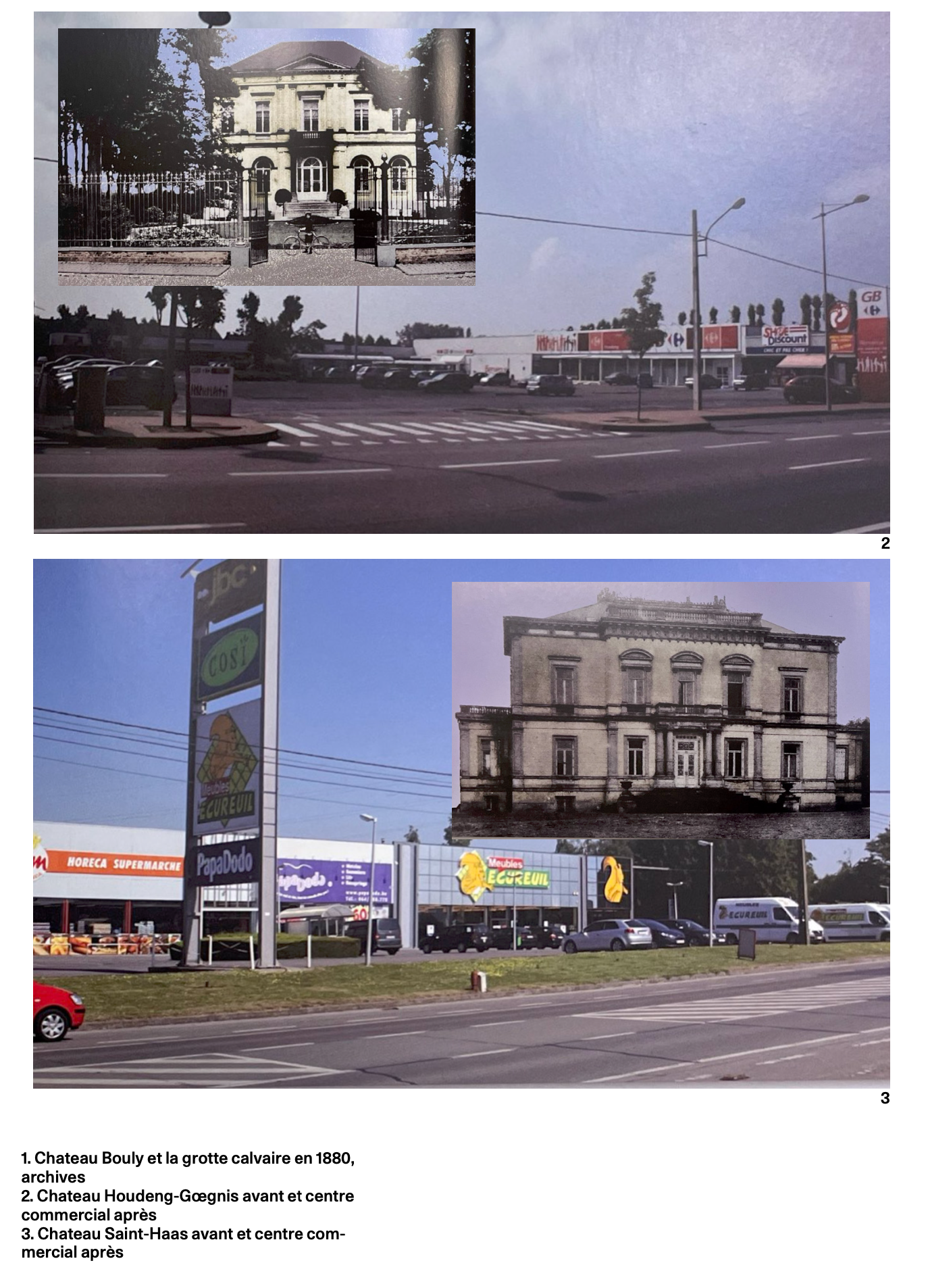 Mais que fait-on de l’un des deux quand l’autre devient prioritaire ? À La Louvière, le traitement des doublons ne relève pas toujours de l’équilibre : lorsqu’un site est abandonné, il disparaît parfois sans laisser de trace. Les anciens domaines directoriaux ont été pour beaucoup démolis, remplacés par des centres commerciaux ou autres opérations immobilières qu’ils rendaient possibles par l’immense ténement foncier qu’ils offraient. Très peu bénéficient d’une reconnaissance patrimoniale ou de dispositifs de protection. Le site de Jolimont raconte aussi cette histoire : la destruction de l’aile occidentale du château en 1973 a laissé place à une modernisation de l’infrastructure. Quelle trajectoire faut-il imaginer pour cet hôpital bientôt partiellement vidé ? Dans une ville organisée autour de couples, que devient l’un quand l’autre prend le dessus ?
