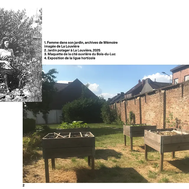 Lors de notre visite du site de Bois-du-Luc, la guide détaillant les bâtiments de la maquette explicative nous parle de la pratique potagère dans la cité ouvrière et de la place qui lui est accordée - dans le plan et dans les moeurs - par la société de charbonnage. L’enjeu moral, voire moralisateur, de la pratique potagère pour le jardinier est plus que central; le jardin devient instrument de contrôle. En effet, par l’entretien de son jardin, l’ouvrier ne perd pas son temps à d’autres pratiques autrement plus subversives ou nocives pour la société qui l’emploie et le loge. « C’est vraiment l’idée qu’on reste sur le droit chemin en cultivant », explicite notre guide. Cette pratique s’étend pour dépasser l’enceinte de la cité, comme notre guide nous l’explique, avec l’implication de la ligue horticole qui propose des formations et organise des concours. Par l’enjeu esthétique, le caractère moral de la pratique se diffuse. Elle devient un cadre structurant de la vie sociale au sein de la communauté et un moyen de valorisation individuelle auprès de la société de charbonnage. Participer permet de se faire voir, et cela de manière positive. Le jardin est à comprendre non seulement comme un support de pratique, mais également un vecteur de reconnaissance. Aujourd’hui, dans la cité ouvrière, un logement-musée est ouvert au public, son jardin donne à voir « un vrai potager de mineur » autour duquel plusieurs acteurs du quartier sont amenés à se rencontrer, le public du musée, ses employés et les personnes en situation de handicap qui vivent dans l’ancien hôpital du site. Par son entretien, le jardin crée des ponts entre passé et présent en privilégiant la culture d’une mémoire à celle d’une production.