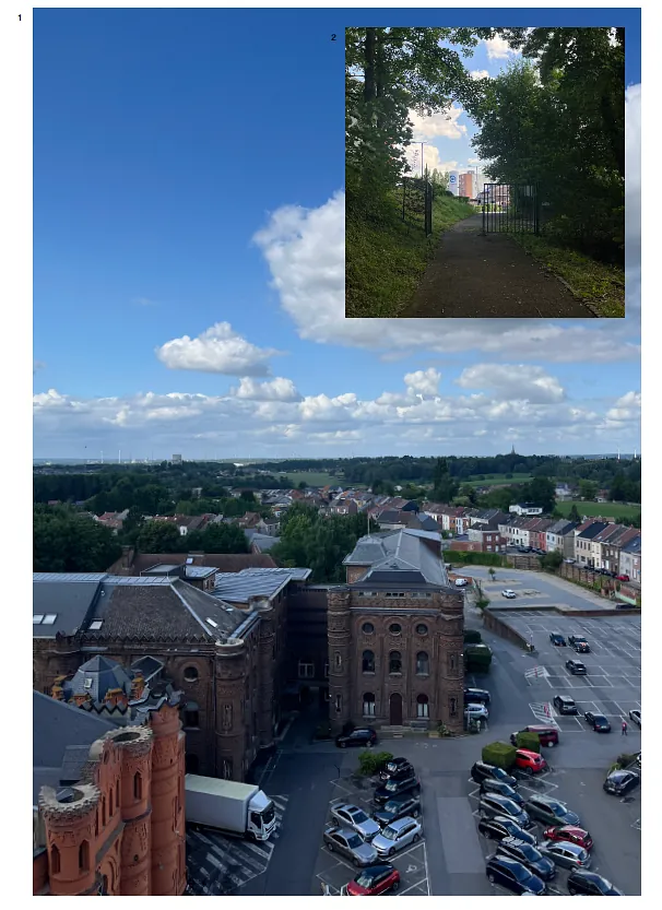 « là je ne l’ai pas englobé parce qu’à l’époque, il était considéré comme terrain privé, on l’a acquis depuis deux ans, je crois deux ans, deux ans et demi donc maintenant ça peut s’intégrer dans le parc de la ville ». De même que pour le conseil en communication de Jolimont, les outils graphiques qu’il mobilise ne sont pas ceux de