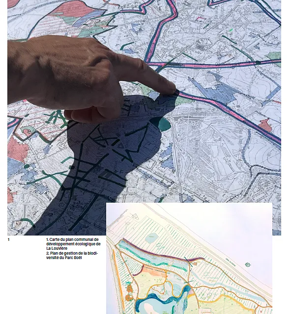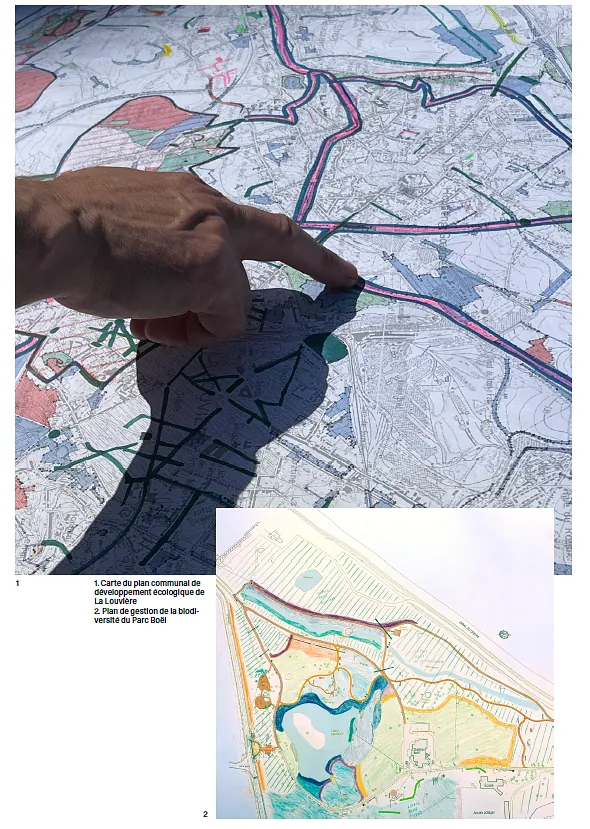 Comment par l’établissement de plans et de cartes le territoire est-il maîtrisé et de quelle manière la création d’outils de représentation révèle des manières d’en prendre soin ? Deux rencontres illustrent le point de départ de cette réflexion, celle du consultant en communication du site hospitalier de Jolimont et celle du conseiller en biodiversité, Ville de La Louvière à propos du parc Boël. Tous deux, à un moment de leurs exercices, ont eu le besoin de se représenter le territoire à l’aide d’outils. L’un, par une maquette 3D, a remodelé le site dont il est responsable. Le second, annote des indications qu’il repère sur une carte existante.