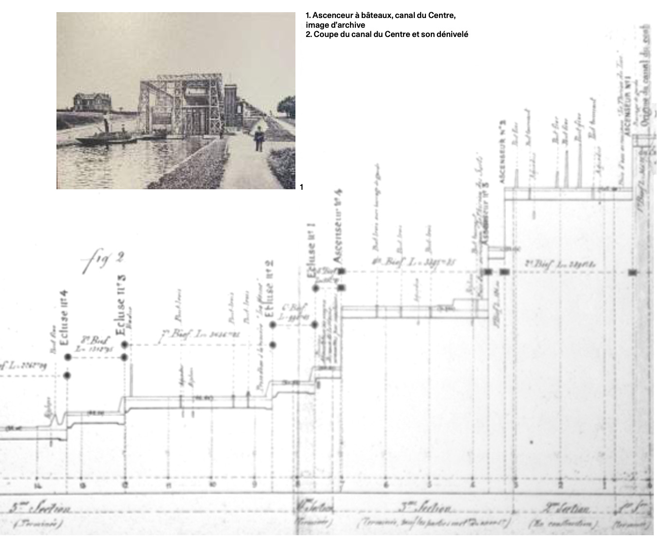 Le canal du Centre est une figure paysagère solide du territoire, une infrastructure intrinsèquement liée à l’histoire urbaine et productive de La Louvière. Creusé dès 1884, son ouverture en 1917 vient désenclaver une région riche en charbon mais peu fournie en voie d’eau navigable naturelle. La déclivité importante implique la construction des emblématiques ascenseurs à bateau, qui permettent de franchir une dénivellation d’une quinzaine de mètres chacun.